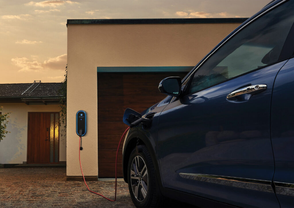 Home charge point which allows charging speeds from 7.4kW to 22kW within the same unit.